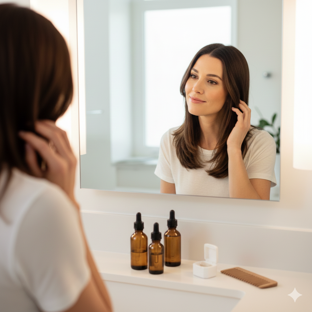 Customized treatment strategies for female pattern hair thinning, prescribed and managed by our NP..